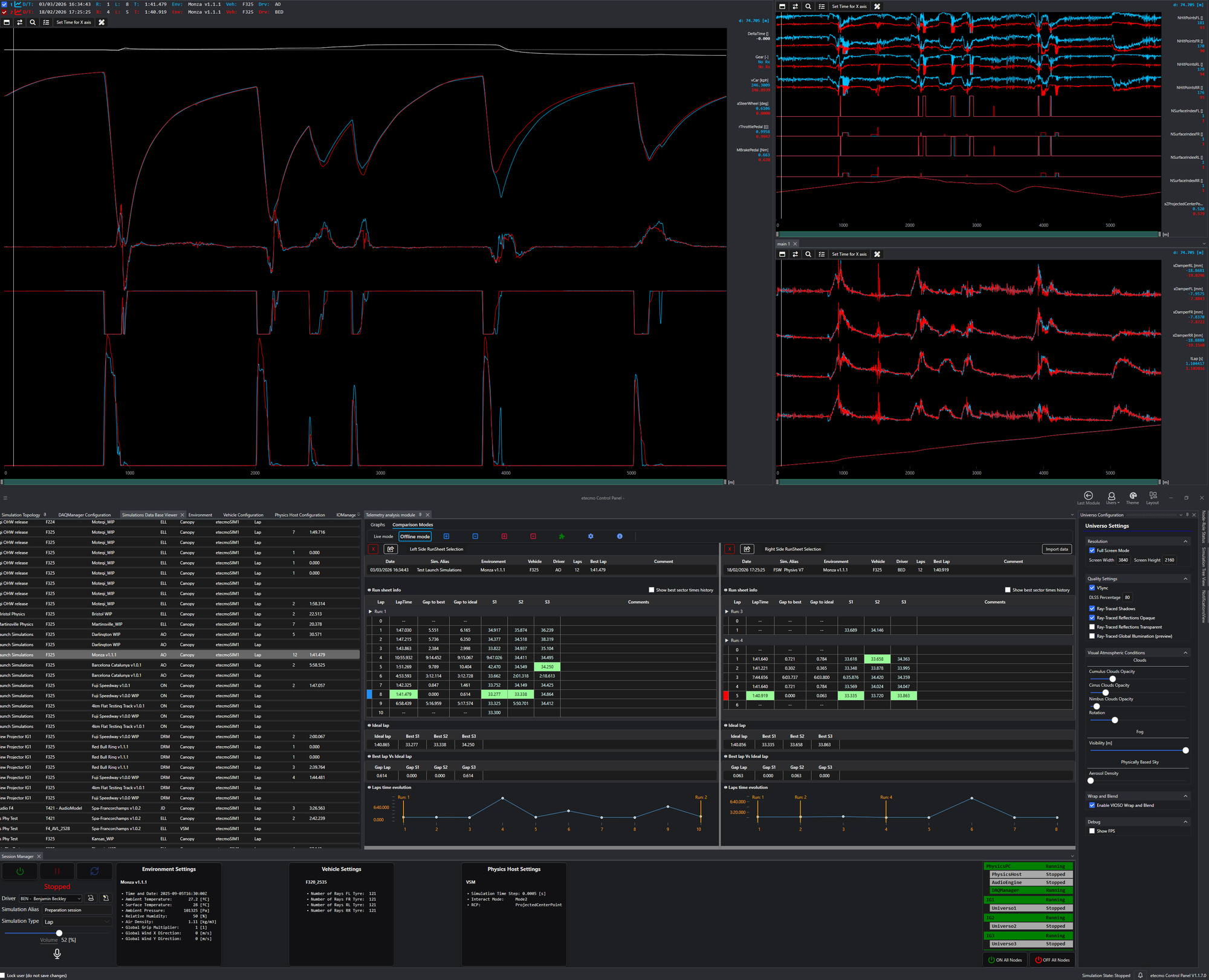 All of this while being able to analyse your data in real-time, and compare it with any simulation previously done and stored in the database, or even plotted against real data from acquisition systems such as WinTAX, PI, etc...